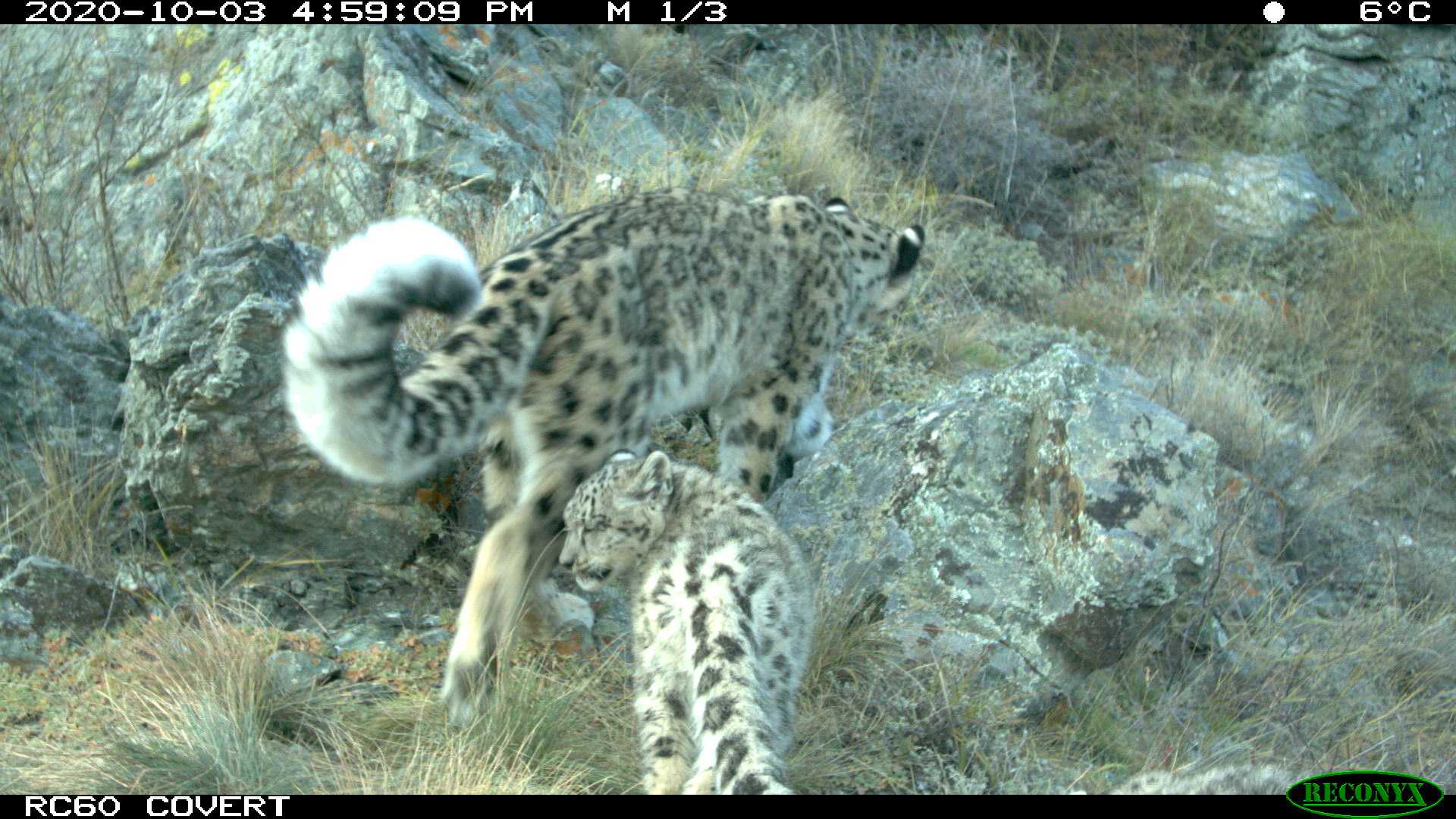 Самка снежного барса, выпущенная на территорию Саяно-Шушенского заповедника в 2019 году, принесла потомство.