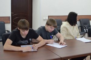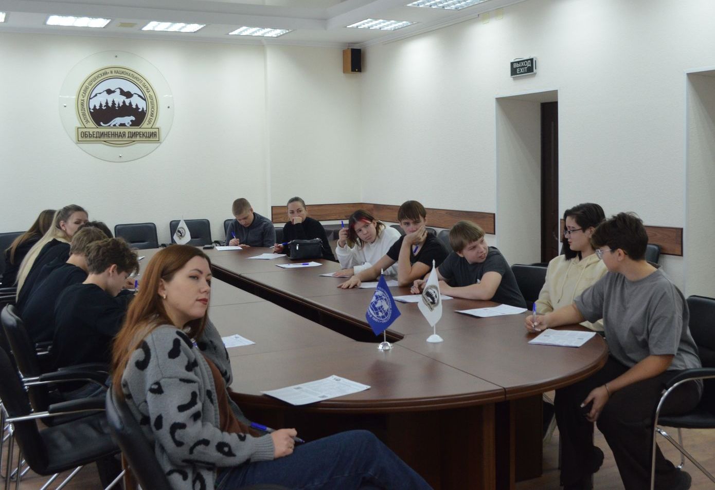 На площадке Объединённой дирекции заповедника «Саяно-Шушенский» и национального парка «Шушенский бор» проверить свои знания по географии пришли учащиеся 8 класса школы №3 посёлка Шушенское со своим педагогом, а также к акции присоединились некоторые сотрудники Объединенной дирекции.