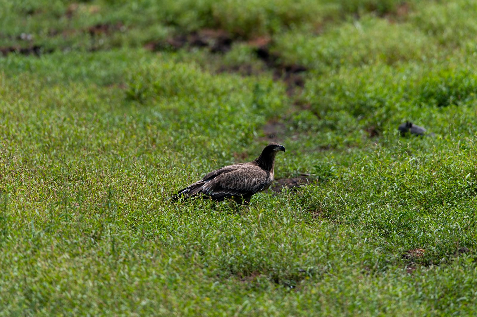 «Следуя по Саяно-Шушенскому водохранилищу наше внимание привлекла крупная птица, сидевшая на береговой линии. Первоначально мы предположили, что это беркут, однако, приблизившись и сделав несколько фотоснимков, пришли в замешательство, – рассказывает автор фото Роман Афанасьев – Ранее мы никогда не встречали птицу с подобным оперением и неоперённой цевкой. Орлан сидел на земле, что-то клевал, скорее всего, это был лещ. Когда мы подъехали ближе, он неторопливо взлетел, что позволило сделать ещё несколько кадров».