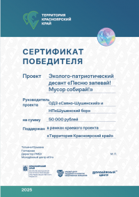 «Эколого-патриотический десант «Песню запевай! Мусор собирай!» в числе победителей проекта «Территория Красноярский край»