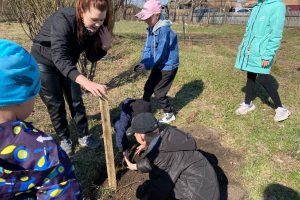 Под руководством опытных наставников школьники дружно приступили к посадке молодых саженцев. Они бережно размещали саженцы, засыпали их плодородной землёй и устанавливали деревянные колышки для поддержки.