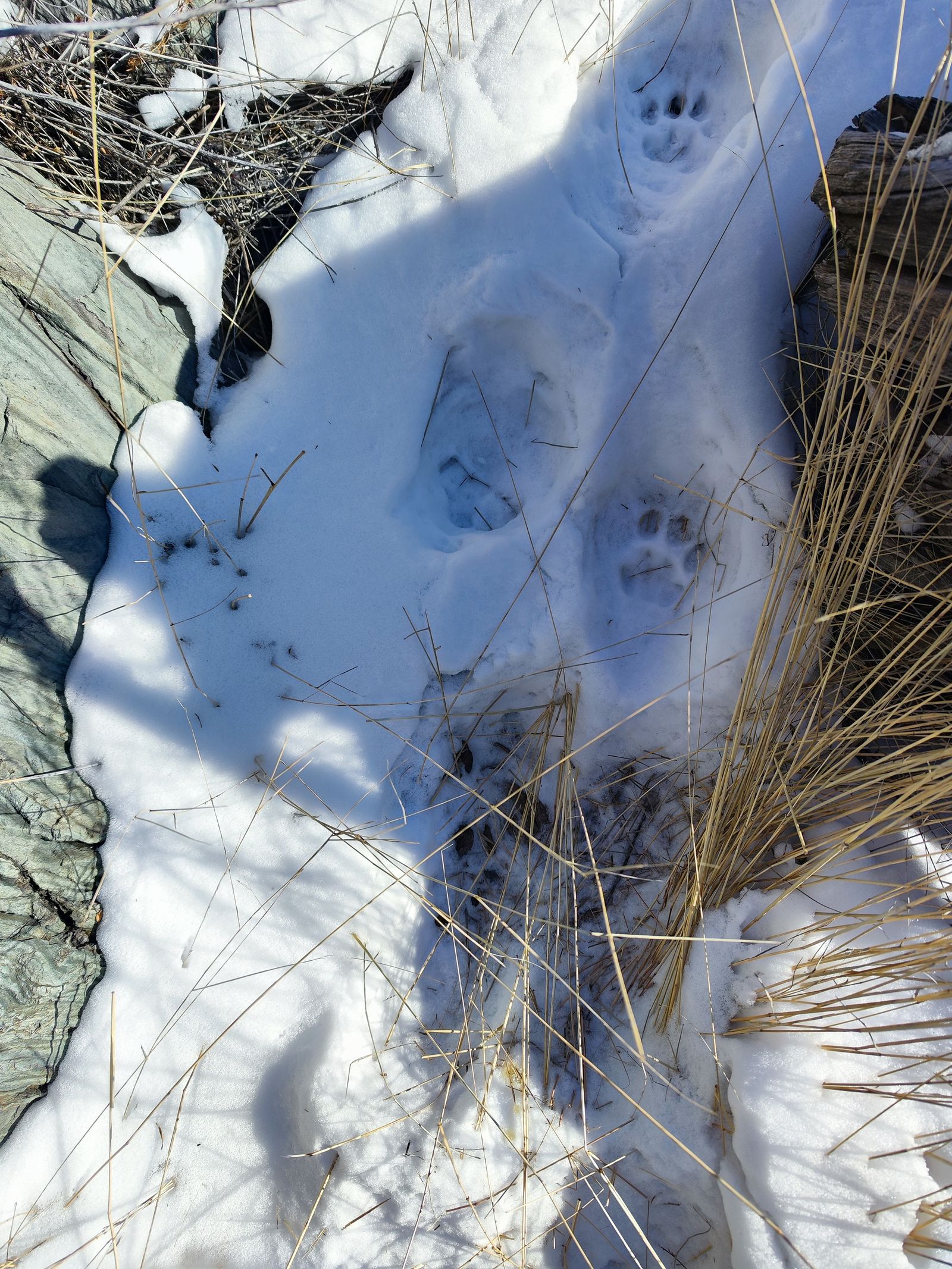 «Следы жизнедеятельности снежных барсов встречались практически повсеместно: от типичных поскрёбов и задиров на деревьях до свежих отпечатков лап на снегоходных дорогах», – рассказывают участники экспедиции.