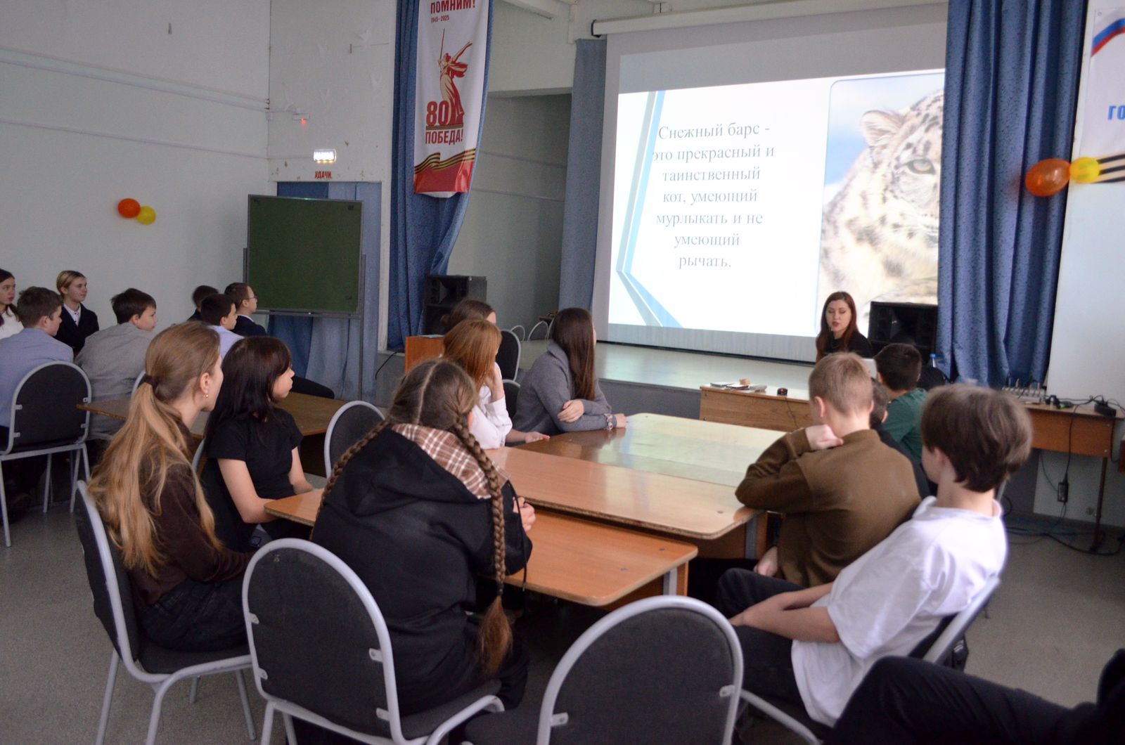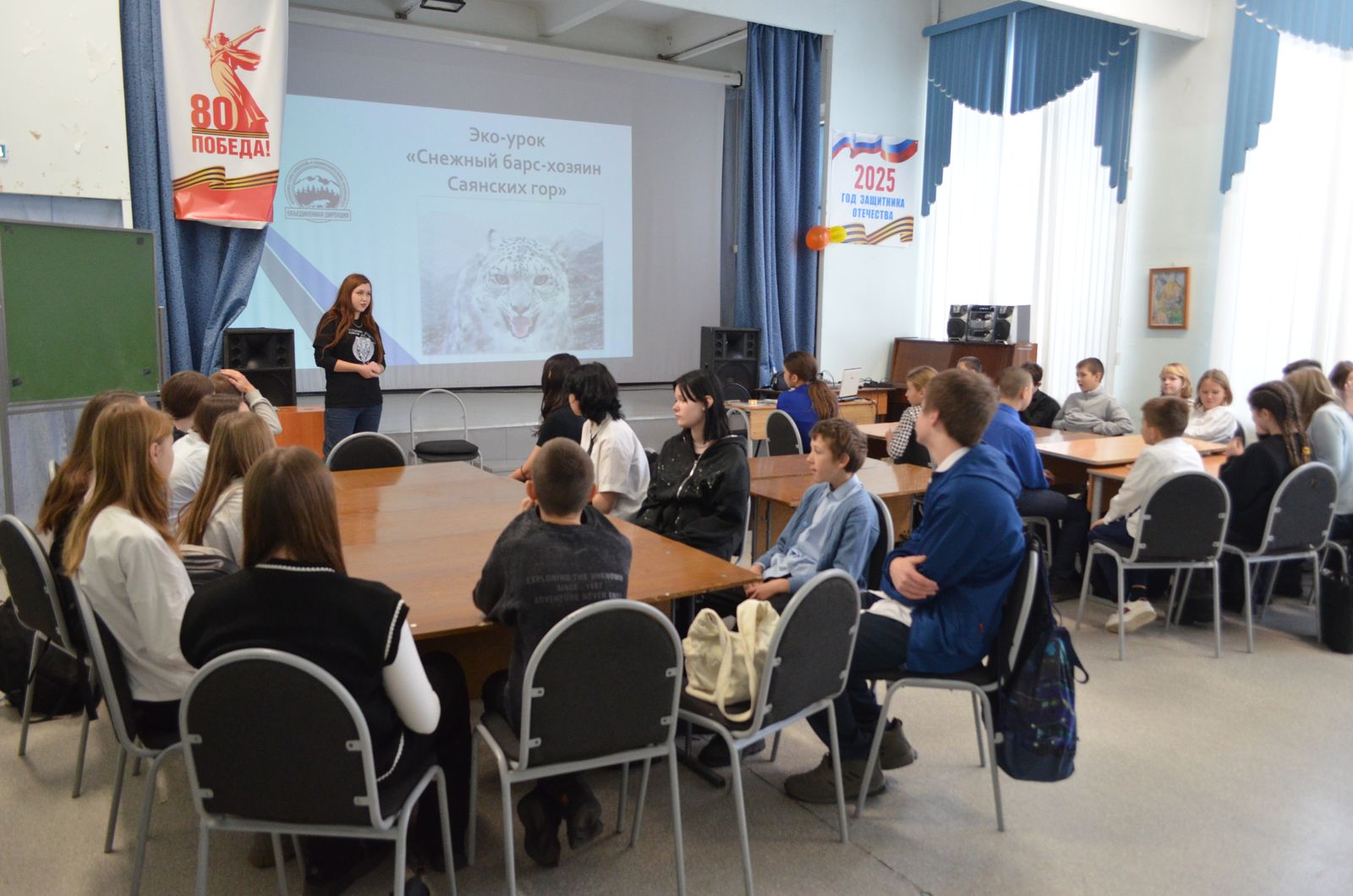 В рамках реализации грантового проекта «Снежный барс – хозяин Саянских гор», поддержанного Президентским фондом природы, сотрудники отдела экологического просвещения Объединённой дирекции заповедника «Саяно-Шушенский» и национального парка «Шушенский бор» посетили Ильичевскую школу. Для учащихся 6-7 классов была проведена серия увлекательных экологических занятий, посвящённых величественному и таинственному обитателю горных вершин – ирбису.