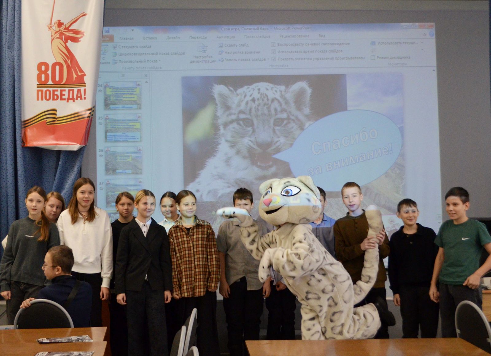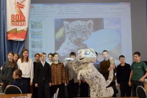 Знакомство с удивительным миром снежного барса началось с приветственного слова сотрудников Дирекции, которые подчеркнули значимость сохранения этого уникального вида. Затем, с помощью познавательной презентации, школьники узнали множество интересных фактов об одной из редчайших диких кошек нашей планеты: как отличить одну особь от другой, о впечатляющей способности снежных барсов к плаванию и их умении совершать прыжки на расстояние до 6 метров. Кроме того, учащиеся получили информацию об особенностях воспитания потомства у ирбисов и о том, зачем этим животным, как и людям, необходимы «паспорта» и многое другое.