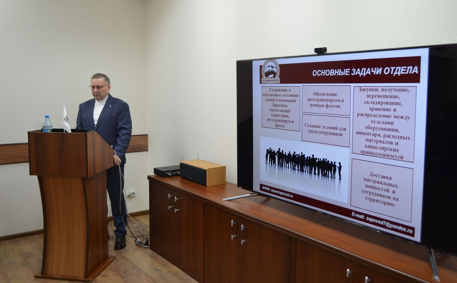 Заместитель директора по общим вопросам – Андрей Потылицын рассказал о планах работы отдела обеспечения основной деятельности. Среди основных задач – проведение текущего ремонта зданий и сооружений Дирекции, а также подготовка к проверкам контролирующих органов. Ежегодно сотрудники отдела занимаются снабжением и доставкой необходимых товарно-материальных ценностей на заповедные территории. Кроме того, в обязанности сотрудников отдела входит работа по охране труда и проведению биотехнических мероприятий – эта деятельность также будет продолжена.