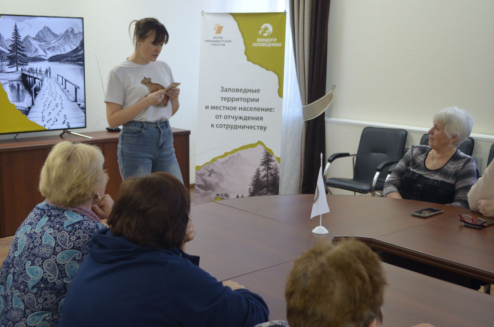 В рамках реализации проекта «Заповедные территории и местное население: от отчуждения к сотрудничеству» сотрудники отдела экологического просвещения Объединённой дирекции организовали тематическую встречу под названием «Зелёная гостиная». Участниками мероприятия стали слушатели Народного университета «Активное долголетие».
