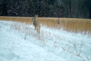 На территории Перовского кластера национального парка «Шушенский бор» в зимнее время традиционно регистрируется повышенный интерес копытных к кормовым полям. Это подтверждают материалы фотоловушек, визуальные встречи и следы присутствия животных.
