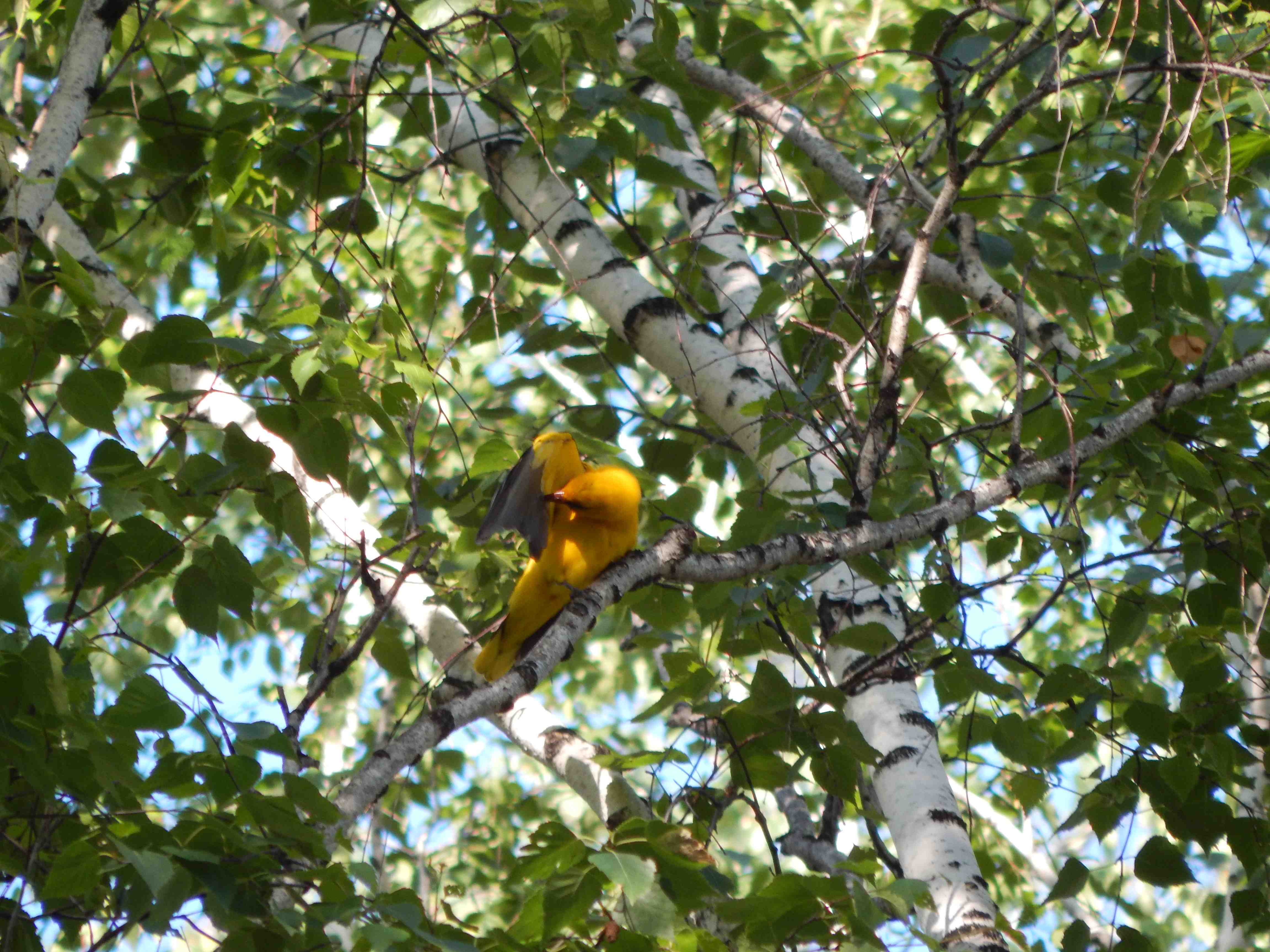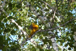 Птиц ярко-жёлтой тропической окраски можно встретить в Перовском кластере национального парка «Шушенский бор». Иволга (Oriolus oriolus) обычный вид смешанных лесов кластера и их опушек. Эти птицы прилетают одними из последних наших путешественников – в середине-конце мая, когда лес уже надел листву. Своё появление они отмечают громким чарующим флейтовым голосом-свистом.